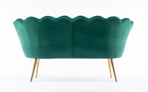 Sofa o nietuzinkowym kształcie, niezwykle wygodna dzięki głębokiemu siedzisku. Siedzisko tapicerowane miękką tkaniną welurową z pionowymi przeszyciami wewnątrz siedziska. Stabilne siedzisko zapewniają cztery nogi malowane proszkowo w kolorze złotym. Ten piękna sofa nada blasku każdemu wnętrzu. Produkt wysokiej jakości wykonany z najlepszych materiałów.
