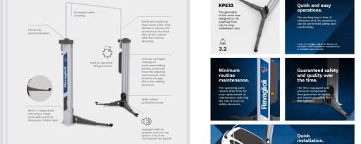 Konstrukcja podnośnika dająca swobodny dostęp do wnętrza pojazdu. Podnośnik posiada elektroniczną synchronizację wózków. Wyposażony jest w nowy system srub