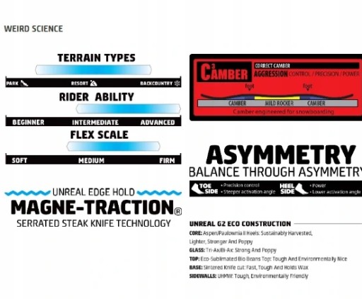 - Magne-Traction to specjalna pofalowana krawędź o 7 punktach kontaktowych. Normalna deska posiada tylko 2. Dzięki temu deska dużo stabilniej jeździ na krawędzi, szczególnie pokazując to na twardym lub oblodzonym stoku. Magne Traction nie trzeba ostrzyć tak często jak zwykłej krawędzi, aby nadal cieszyć się niewiarygodnym trzymaniem podczas jazdy. Patent Mervin Mfg.