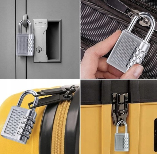 - Fabrycznie ustawiony szyfr to 0 - 0 - 0 - 0, należy go ustawić, aby otworzyć kłódkę.