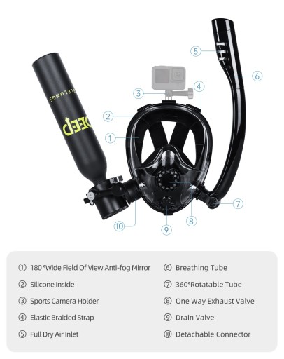 DIDEEP Универсальный набор для дайвинга: маска с трубкой + кислородный баллон 0,5 л.