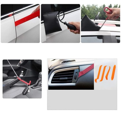To zestaw narzędzi jest dostarczany z 5 szt. Różnej wielkości, niezakłócającym klinem, łatwo wykonaniem pracy i zapobiegającym uszkodzeniom drzwi i okien, możesz ich używać z poduszka powietrzna, aby uzyskać lepszy efekt.