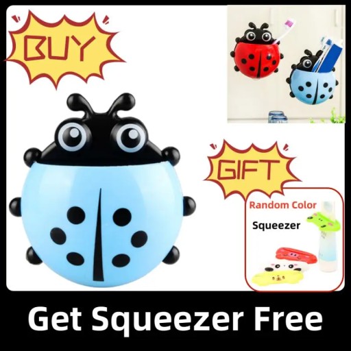 Cartoon Ladybug Toothbrush Holder Wall Mounted Remote Control Shelf Household Toothbrush Toothpaste Holder Container Accessories