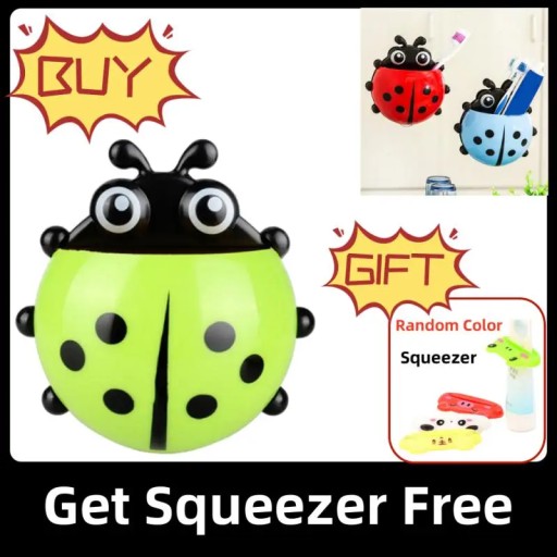 Cartoon Ladybug Toothbrush Holder Wall Mounted Remote Control Shelf Household Toothbrush Toothpaste Holder Container Accessories