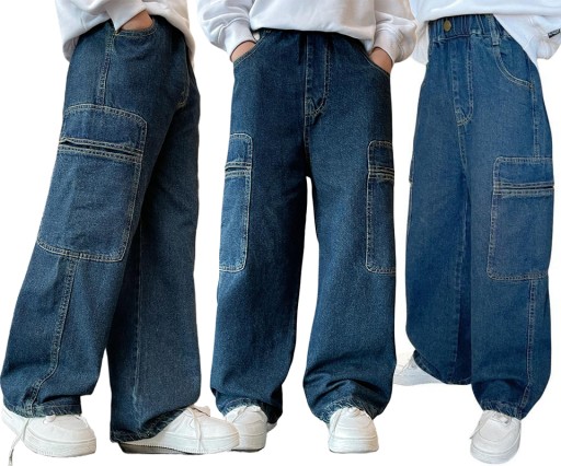 ДЕТСКИЕ ШИРОКИЕ БРЮКИ-КАРГО ШИРОКИЕ ДЖИНСЫ С КАРМАНАМИ