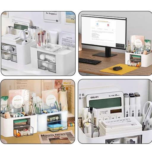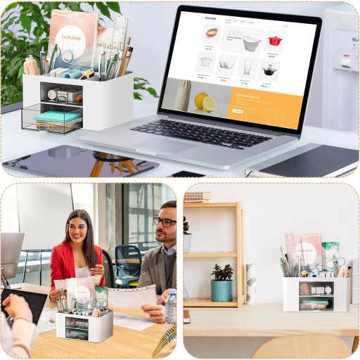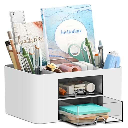 - Zwiększona pojemność tego organizera na biurko obejmuje 5 przegródek i 2 przezroczyste szuflady, oddzielone od organizera, co zapewnia porządek na biurku. Przezroczyste szuflady ułatwiają dostęp do rzeczy, zwiększając pojemność do przechowywania większej liczby przedmiotów i tworząc czysty pulpit .