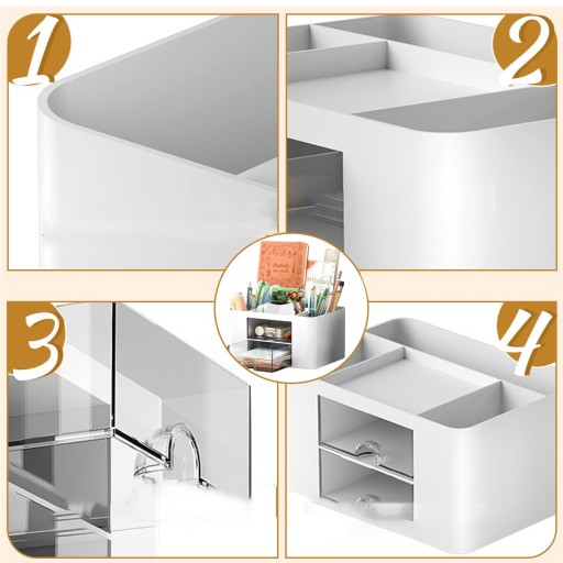 - Elementy do przechowywania na biurku składają się z warstw, a każda komora ma inny rozmiar. Możesz wybrać obszar przechowywania w zależności od rozmiaru przedmiotów.