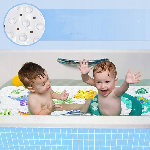 Nasza mata łazienkowa ma wymiary 100 x 40 cm i wystarczy na całą łazienkę. Jeśli masz kilkoro dzieci, mała mata do kąpieli nie wystarczy. Ta mata do kąpieli pozwala kąpać się razem wielu dzieciom, oszczędzając więcej czasu. Więcej dzieci, więcej zabawy.