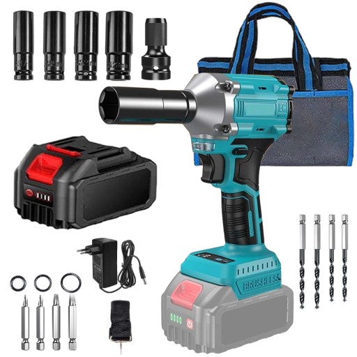 - Elektryczny klucz udarowy Uaoaii jest wyposażony w 4 sztuki nasadek udarowych (17 mm/19 mm/21 mm/23 mm), 4 sztuki wiertarek udarowych i 4 sztuki śrub udarowych. To akcesorium może wykonać 95% prac naprawczych w życiu