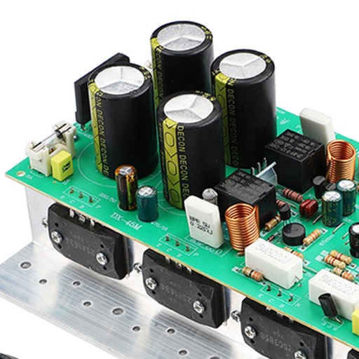 Stabilność: Płyta wzmacniacza mocy ma cztery kondensatory filtrujące (tryb mono), o łącznej pojemności 16800 mikrofaradów, aby zapewnić stabilną pracę.
