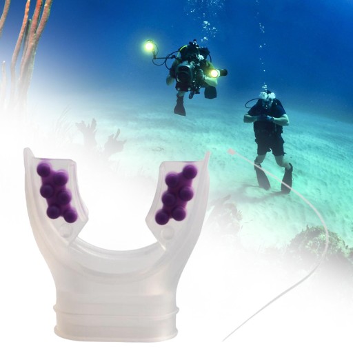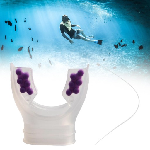 Materiał: profesjonalny zgryz do nurkowania, wykonany z silikonu, który jest miękki, solidny i trwały. Nie jest łatwo uszkodzony, ma niezawodną jakość i długą żywotność.
