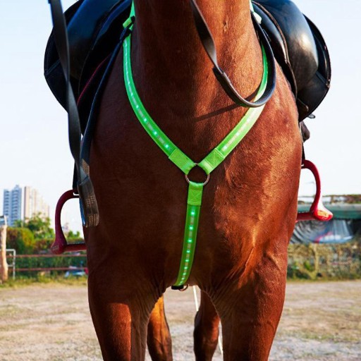 Każda obroża na napierśnik składa się z 3 pasków LED, z których każdy jest regulowany, odpowiedni dla koni różnej wielkości.