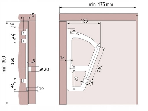 Rozstaw otw. montażowych: 32 mm, 160 mm