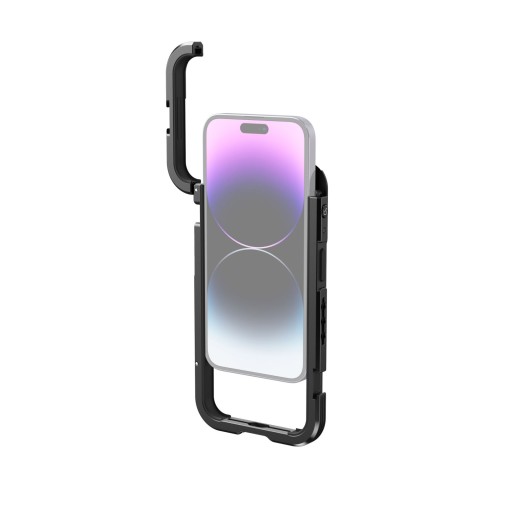 SmallRig Zestaw do vlogowania Mobile Video Kit Single Handheld dla iPhone 14 Pro Max to połączenie idealnie dopasowanej klatki operatorskiej i bocznego uchwytu, co pozwala na wykonywanie precyzyjnych i płynnych ujęć. Klatka oferuje dodatkowe punkty mocowania akcesoriów i wykorzystuje system szybkiego uwalniania.