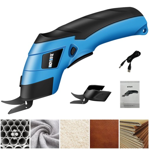 Nożyce elektryczne do łatwego i szybkiego cięcia tkanin, włókna szklanego, kartonu, tkanin, lnu, miękkiej skóry, papieru, dywanów i materiałów oszczędzają dużo czasu.