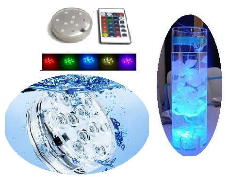 WODOODPORNA PODSTAWKA LED RGB + pilot 16 kolorów z przyssawką.