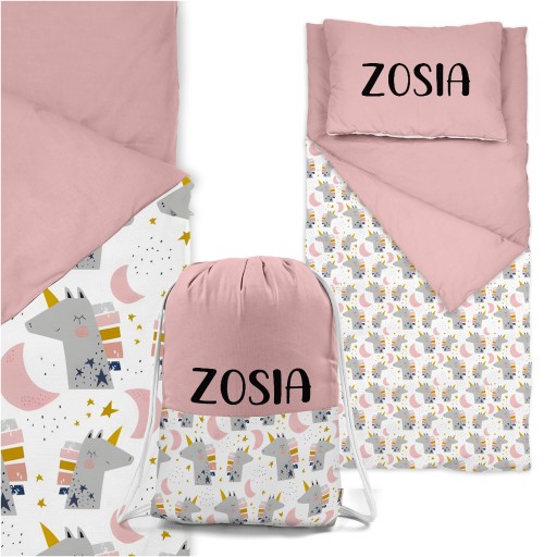 ŚPIWOREK do PRZEDSZKOLA ŻŁOBKA POŚCIEL DLA DZIECKA Z WORKIEM 145x75 + IMIĘ