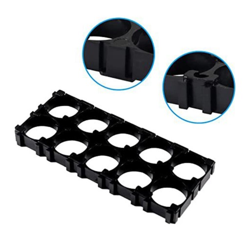 [Przekładka baterii]: Tryb: Przekładka ogniwa 2x5; Dla: baterii litowej 18650; Rozstaw otworów: 20,2 mm; Średnica otworu: 18,4 mm.