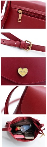 Torebka posiada jedną, zamykaną na suwak przegródkę z tyłu oraz jedną mniejszą w części głównej. Pasek posiada regulację długości.