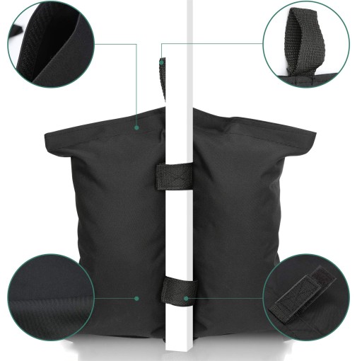 🎇Dzięki wzmocnionej, podwójnie szytej konstrukcji, każdy worek z piaskiem może pomieścić do 13 kg piasku, żwiru lub ziemi, utrzymując bezpiecznie namiot rozkładany lub baldachim na miejscu.