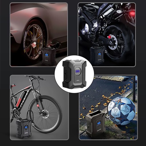 Wyposażony w pełny zestaw nadmuchiwanych dysz, które mogą być używane do nadmuchiwania opon, gumowych łodzi, poduszek powietrznych, nadmuchiwane zabawki, piłek i wielu innych celów.