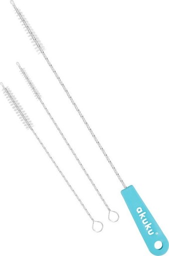 Zestaw wyjątkowo cieniutkich szczoteczek, które idealnie domyją trudno dostępne wnętrza słomek i rurek, będących elementami kubków treningowych i butelek dziecięcych. Odpowiednio wyprofilowane końcówki docierają do trudno dostępnych miejsc. Każda szczoteczka posiada miękkie włosie i wygodny uchwyt. Dostępne w trzech wersjach kolorystycznych: zielona, niebieska, różowa.