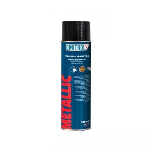 DINITROL Metallic to zaawansowany środek antykorozyjny , który wyróżnia się doskonałą odpornością termiczną oraz elastycznością w niskich temperaturach. Produkt ten stanowi idealne rozwiązanie do konserwacji podwozi i ram samochodów oraz do zabezpieczania części zamiennych, maszyn i konstrukcji żelaznych i stalowych w skrajnie korozyjnym środowisku.