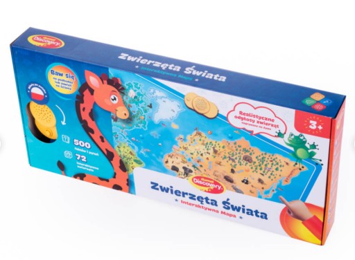 Mapa opracowana z najwyższym zaangażowaniem i poświęceniem, tak, aby Dziecko mogło z niej korzystać przez długie lata. Z Interaktywną Mapą dzieci odkryją sekrety Świata Zwierząt. Dzięki niej Dzieci mają dostęp do szerokiej wiedzy dotyczącej 72 zwierząt. Poznają odgłosy zwierząt, zasięg ich występowania, pożywienie oraz różne zabawne fakty na ich temat.