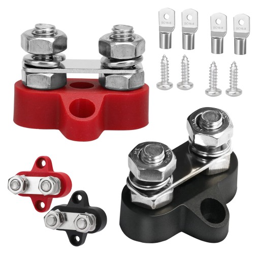 - Wytrzymałe izolowane listwy zaciskowe zostały zaprojektowane tak, aby utrzymać okablowanie obwodu w czystości i zapobiegać zwarciom elektrycznym. Idealny do samochodów ciężarowych, samochodów kempingowych, autokarów, łodzi itp. do regulacji pojazdów lub układania akumulatorów.