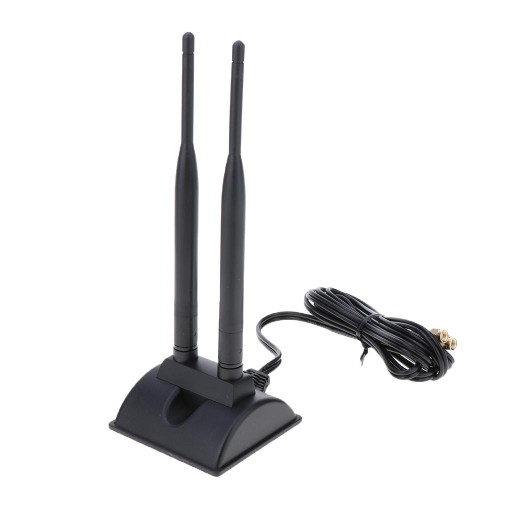 Złącze antenowe: Podwójne RP- z wtykiem żeńskim; Wysokość anteny: 7 "(nie obejmuje podstawy); długość przedłużacza: 200 cm/6,5 stopy