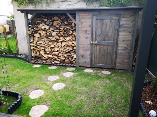 - Pojemność rzeczywista: 3,2 metra przestrzennego drewna kominkowego o standardowej długości 33 cm + 2 metra kwadratowego powierzchni domku narzędziowego