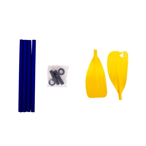 Aby zwiększyć komfort użytkowania pontonu w zestawie znajdują się: uchwyty na wiosła, wiosła, wygodne gumowe uchwyty do przenoszenia, pompka, zawór szybkiego napełniania i opróżniania
