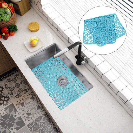 Praktyczne maty pod zlewozmywak na dno kuchennego zlewozmywaka mają na celu ochronę zlewozmywaka, szklanek i talerzy przed zarysowaniami i odpryskami.