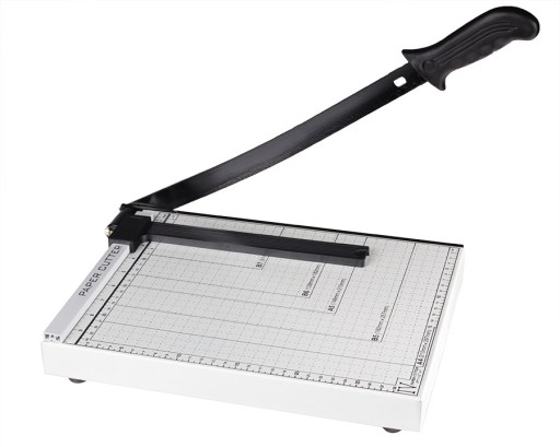 Obcinarka gilotynowa do papieru 10x12". Blat gilotyny wykonany jest z metalu, nie jest to drewniana wersja ze sklejki, jak w innych ofertach w internecie. Lakierowany na biało wygląda bardzo estetycznie. Wybita skala nie ściera się wraz z czasem użytkowania.
