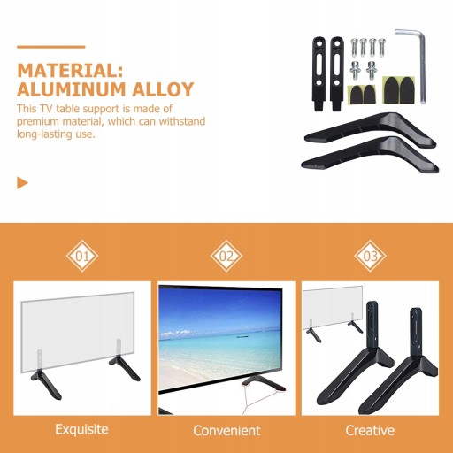 ✅Ten wspornik stolika pod telewizor wykonany jest z najwyższej jakości materiału, który wytrzyma długotrwałe użytkowanie. Zawiera materiał ze stopu aluminium, który ma wysoką trwałość, niełatwy do odkształcenia. Dobra jakość wykonania, zapewnia praktyczność. Ta podstawka pod telewizor zapewni stałe wsparcie dla telewizora o przekątnej 32-65 cali.