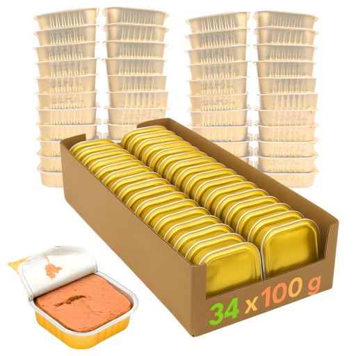 ❇️Waga: Zestaw 102 sztuki: 68 x 100g oraz 34 x 85g (łączna waga karmy: 9,69 kg).