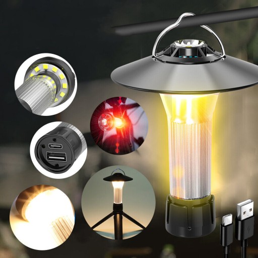 💡【4 tryby oświetlenia】 Latarka kempingowa wykorzystuje źródło światła LED, światło jest miękkie i nie oślepia. Jasność wynosi do 100 lumenów (maksymalnie) i oferuje 4 tryby oświetlenia: biały/biały migający/ciepły biały/migający na czerwono. Przełącznik jednym kliknięciem w pełni spełnia wymagania użytkownika. Światła kempingowe są wodoodporne i mogą być używane nawet w deszczowe dni