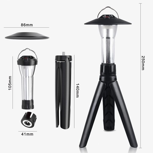 💡【Wielofunkcyjność】 Lampa kempingowa ma funkcję 3 w 1, która może być używana jako przenośna lampa kempingowa, mała lampa wisząca i latarka awaryjna. W zestawie znajduje się odłączane mocowanie statywowe, a lampę kempingową można stabilnie umieścić w dowolnej pozycji. Górny hak umożliwia zawieszenie lampy kempingowej w celu oświetlenia większego obszaru.