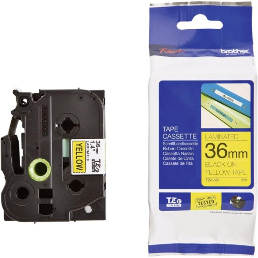 Brother - Taśma czarny druk/żółty.pod. lamin.,8m,36mm (TZE-661)