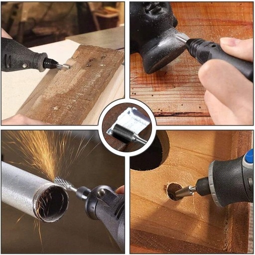 ✅ Wiertło-frez wykonany z węglikowej stali wolframowej. Bardziej wytrzymałe i trwalsze niż frezy HSS lub ściernice trzpieniowe. Drobno i czysto przetworzone.
