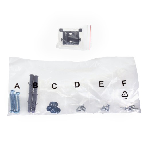 W zestawie komplet śrub do montażu uchwytu do ściany oraz telewizora do uchwytu, a także instrukcja montażu.