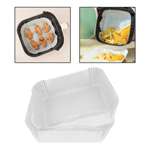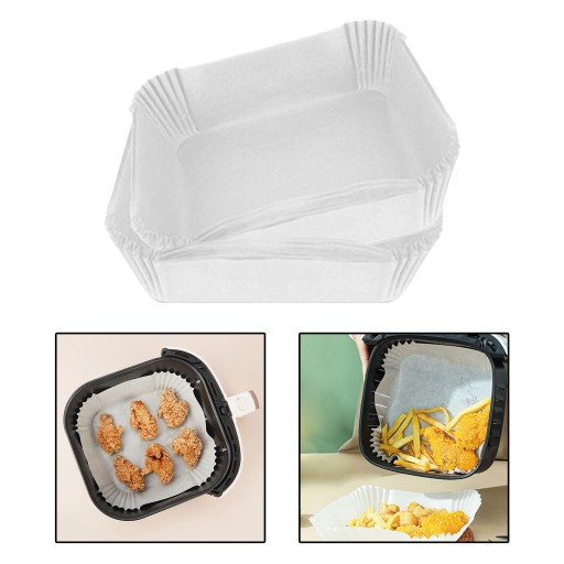 Papiery do frytkownicy: Jednorazowy papier do frytkownicy, kwadratowy kształt, wykonany z dwustronnego papieru z olejem silikonowym, wodoodporny, olejoodporny, nieprzywierający, o dobrej odporności na ciepło. Przed wyborem należy zmierzyć wewnętrzną średnicę frytownicy.