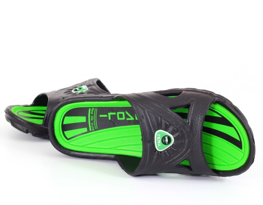 Męskie klapki wykonane z wysokiej jakości materiałów. Idealne na basen lub plaże. Urozmaicą niejedną stylizację. Podeszwa jest wytrzymała i lekka zapewnia komfort i wygodę użytkowania. Delikatnie dopasowuje się do stopy, daje uczucie miękkości.