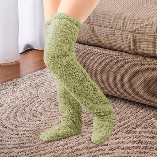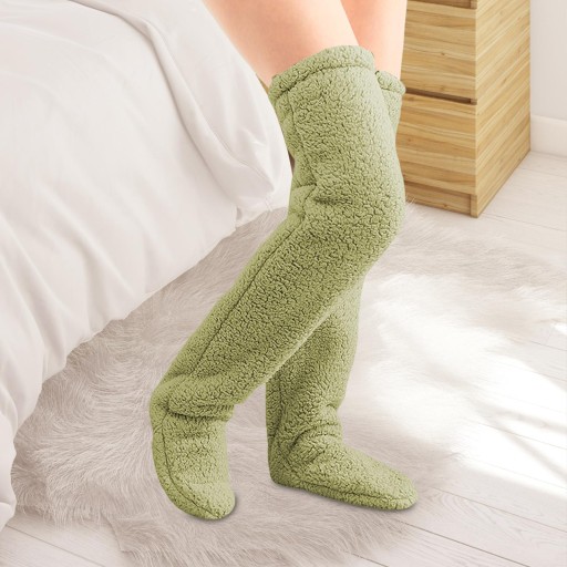 Skarpetki zakolanówki Zimowe domowe skarpetki do spania Okładziny na stopy Pluszowe ocieplacze na nogi Zielone