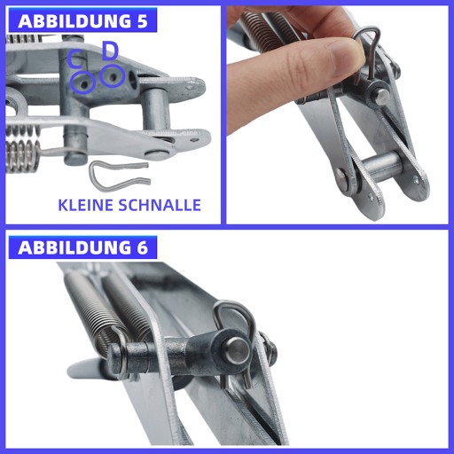 6. gdy krótka klamra zostanie włożona do otworu C (lub D), pozwól krótkiej klamrze przejść przez mały otwór czarnego metalowego pręta cylindra w tym samym czasie, mocno dociśnij i szczelnie zamknij.