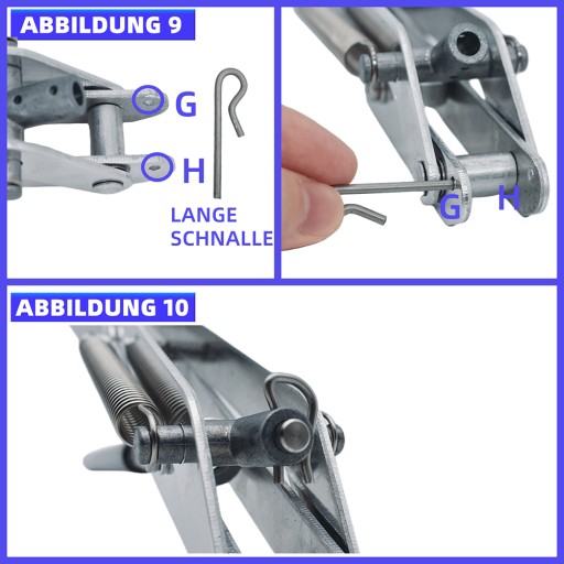 9. Przełóż długą klamrę przez otwory E i F w tym samym czasie, mocno dociśnij, aby długa klamra się zacisnęła.