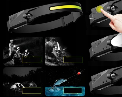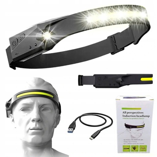 AKUMULATOROWA LATARKA CZOŁOWA CZOŁÓWKA LED DIODY COB Z CZUJNIKIEM RUCHU NA USB