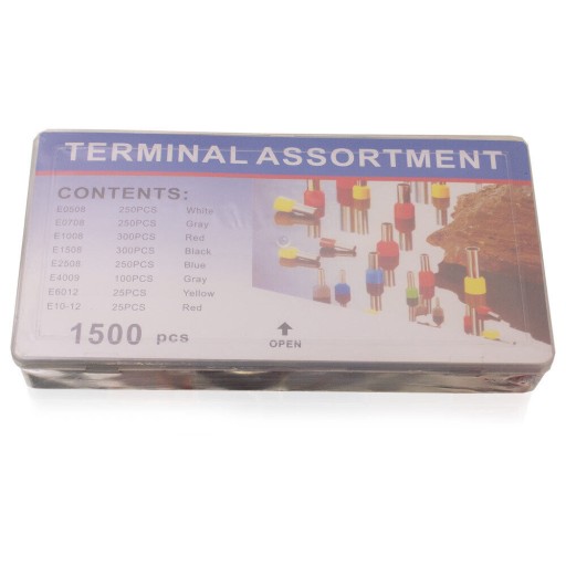 W zestawie 1500 różnych tulejek końcowych przewodów.