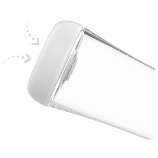 Podczas ssania aktywowana jest MEMBRANA EQUILIBRIUM u podstawy butelki, która uwalnia przepływ powietrza, zapobiegając powstawaniu podciśnienia w jej wnętrzu. Dostęp powietrza od podstawy butelki sprawia, że nie miesza się ono z mlekiem i nie jest połykane przez dziecko. Elastyczność dynamicznego zaworu antykolkowego pozwala za pomocą mikroruchów reagować na potrzeby dziecka - w zależności od intensywności ssania, na bieżąco dostosowuje się przepływ powietrza, zapewniając płynne i regularne karmienie, bez przerw i duszności.