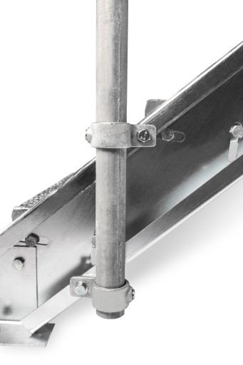 Ta wersja schodów posiada barierkę jednostronną składającą się grubościennej rury ocynkowanej o średnicy 42,4 mm oraz żeliwnych ocynkowanych uchwytów mocujących.